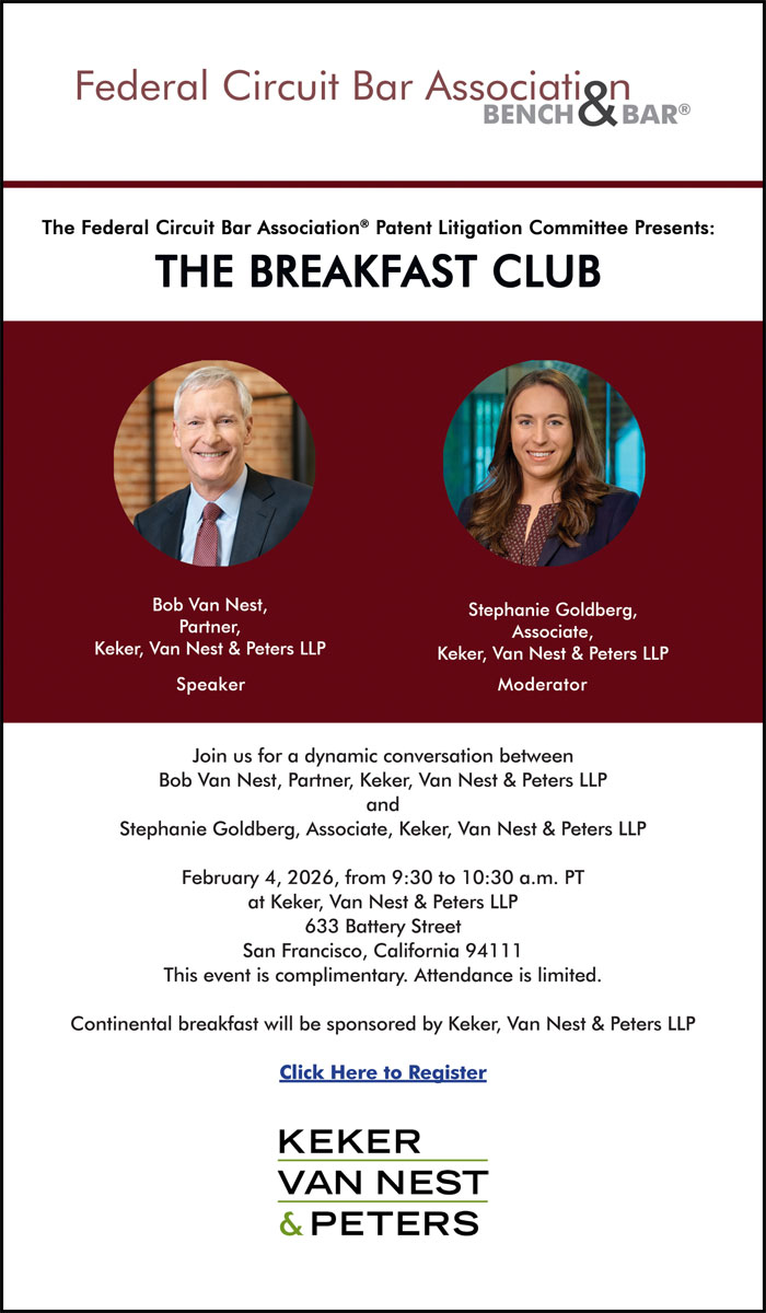Continental breakfast will be sponsored by Keker, Van Nest & Peters LLP